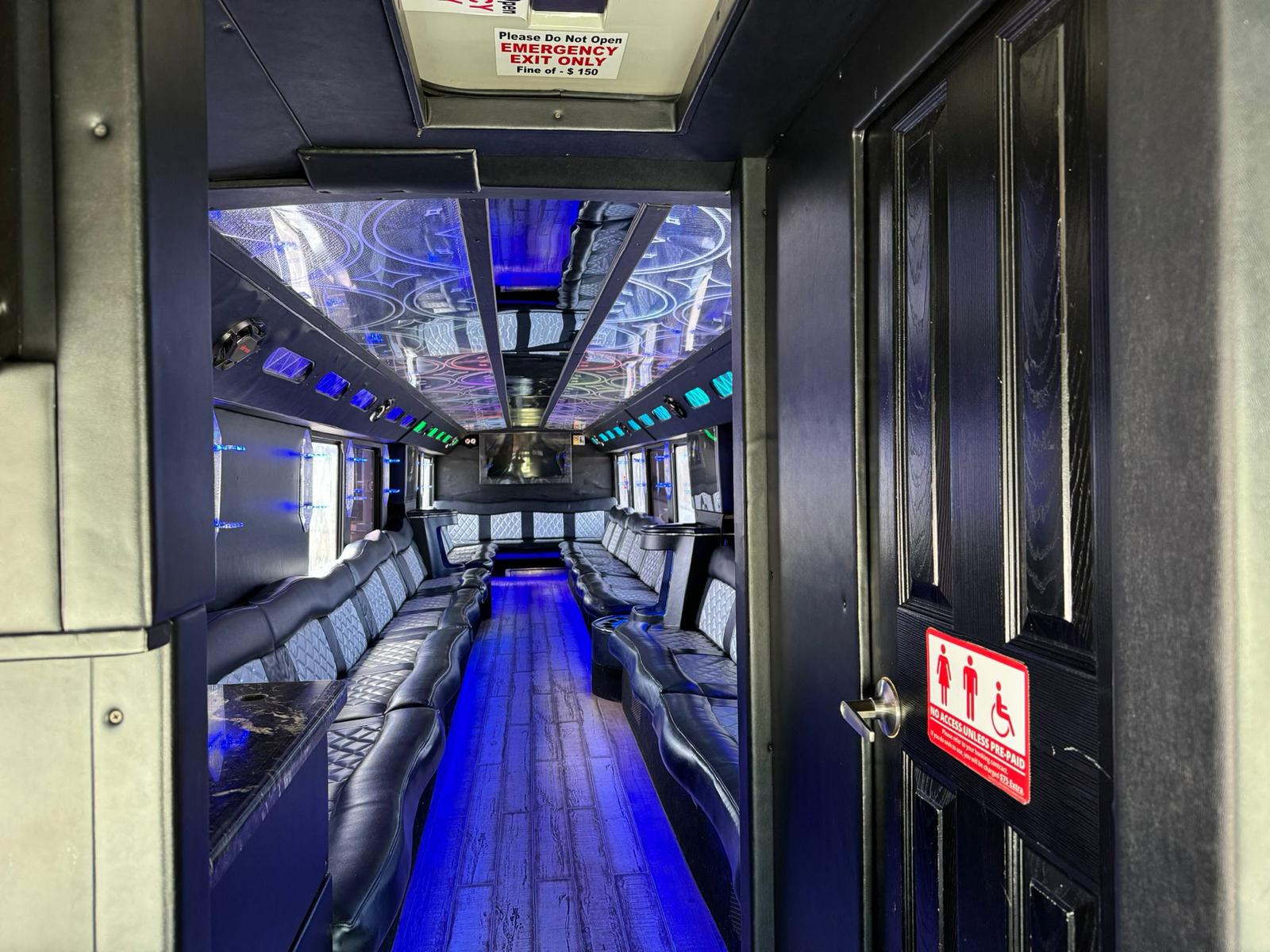 Inside Our Party Bus Features and Amenities (20-1) Vibrant Versatility: Adapting Ambiance with Color-Changing LED Lights Contemporary Chic: Modernizing Spaces with Hardwood Floors Understated Luxury: Enhancing Spaces with Stylish Leather Seats Boundless Sound Quality: Bluetooth Surround Sound